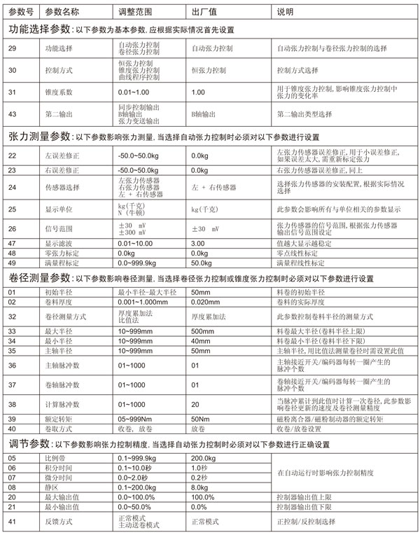 為了使控制器能正確測量卷料張力,必須對與張力測量相關(guān)的參數(shù)進(jìn)行正確的設(shè)置: