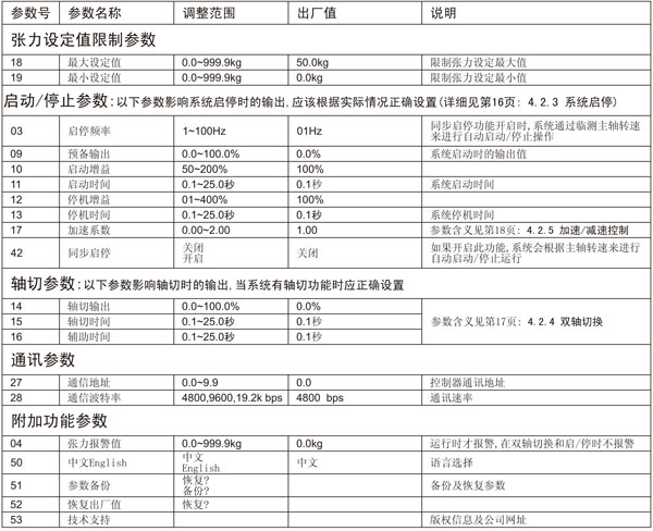 第四章主要介紹全自動張力控制器的調(diào)試及操作,第五章主要介紹卷徑張力控制器的調(diào)試及操作。
